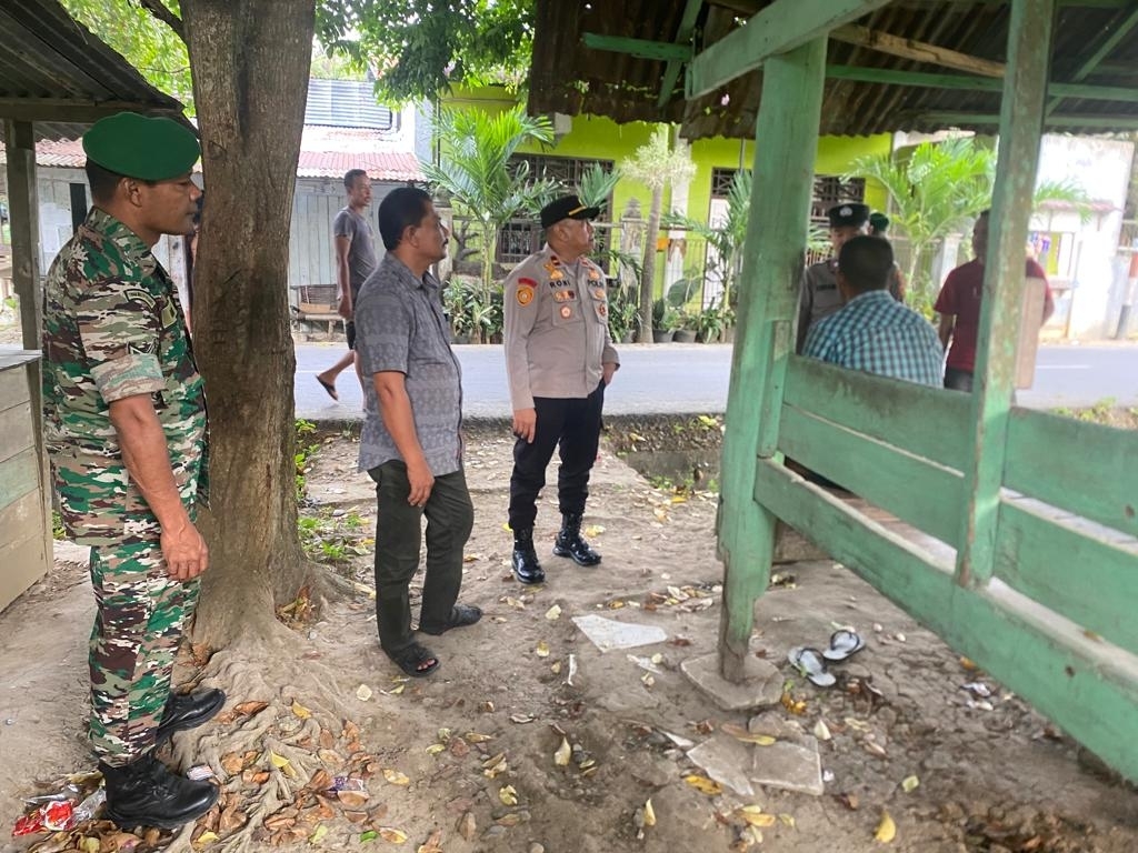 LHOKSEUMAWE – Personel Polsek Muara Dua, Polres Lhokseumawe bersama anggota TNI Posramil Muara Dua mengecek Pos Kamling di sejumlah gampong (desa) di kawasan tersebut, Jumat (5/5/2023).