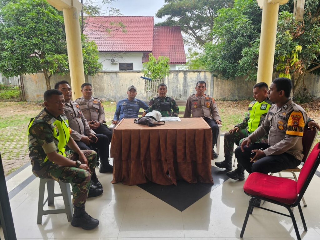 LHOKSEUMAWE – Personel Polsek Muara Satu bersama BKO Polres Lhokseumawe melakukan penjagaan di sekitar lokasi kantor sekretariat PPK Muara Satu, Kota Lhokseumawe, Jumat (16/2/2024).