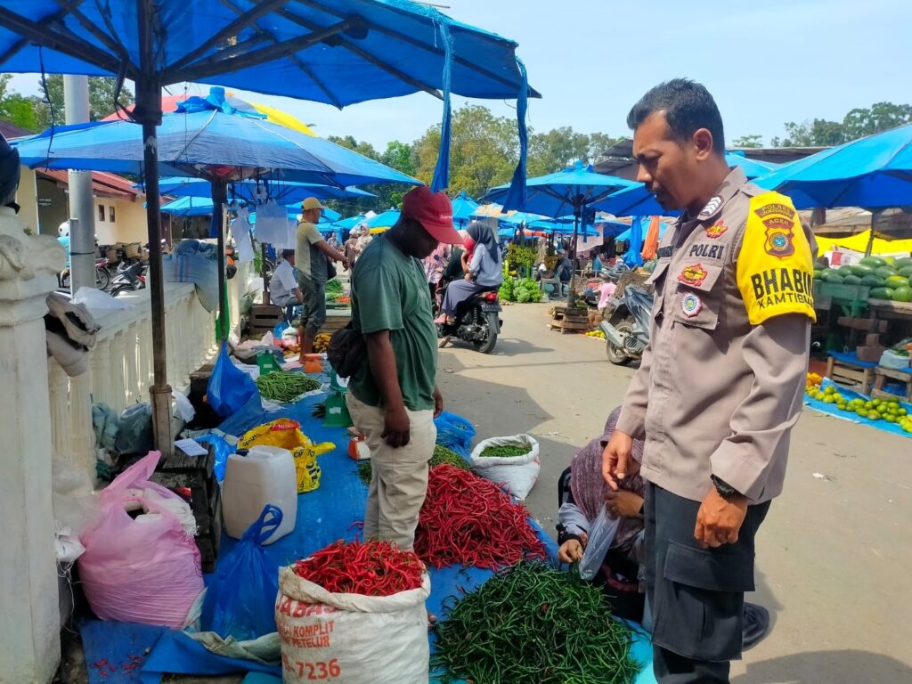 LHOKSEUMAWE – Personel Polsek Muara Satu rutin memantau stabilitas sembako di pasar tradisional maupun toko kelontong di wilayah Muara Satu, Kota Lhokseumawe, kegiatan tersebut untuk mengantisipasi kelangkaan selama bulan suci Ramadhan, Kamis (30/3/2023).