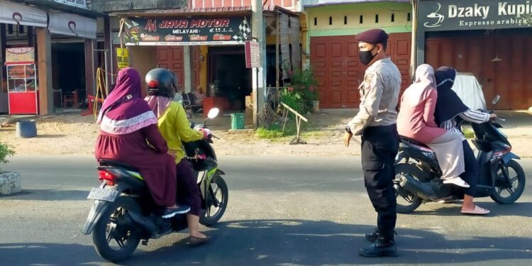 Kata Kapolsek, personel memberikan pelayanan kepada pengguna jalan raya seperti membantu menyeberangkan jalan dan memberi himbauan supaya tertib berlalu lintas serta mengutamakan keselamatan.