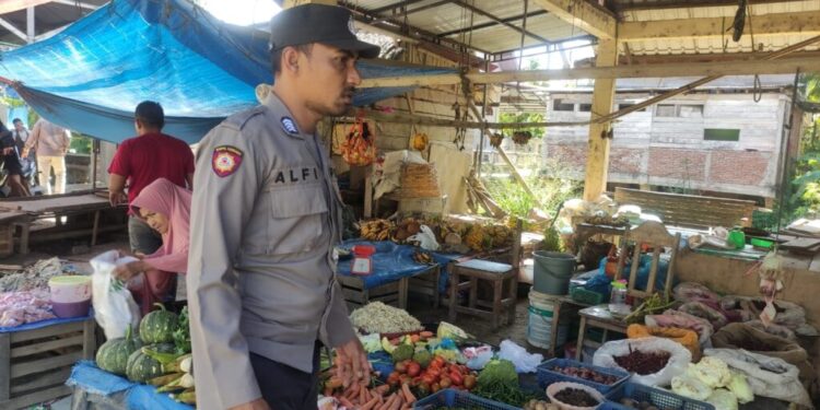 Personel Polsek Nisam Cek Persediaan Sembako di Pasar Tradisional