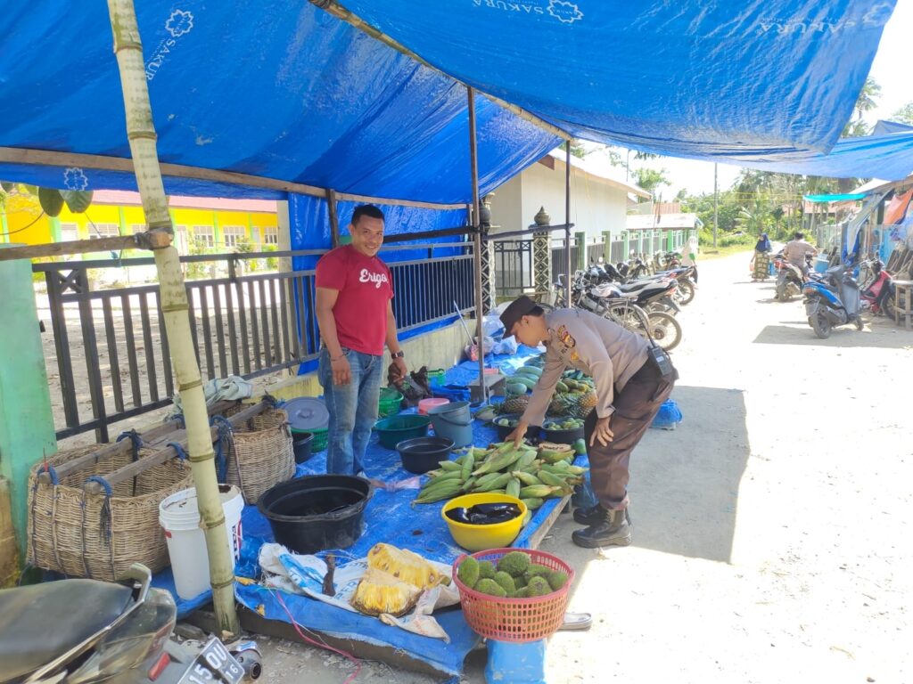 LHOKSEUMAWE – Personel Polsek Nisam kembali monitoring stok sembako ke sejumlah pedagang di pasar Keude Amplah, Kecamatan Nisam, Aceh Utara, wilayah hukum Polres Lhokseumawe, Jumat (31/3/2023).