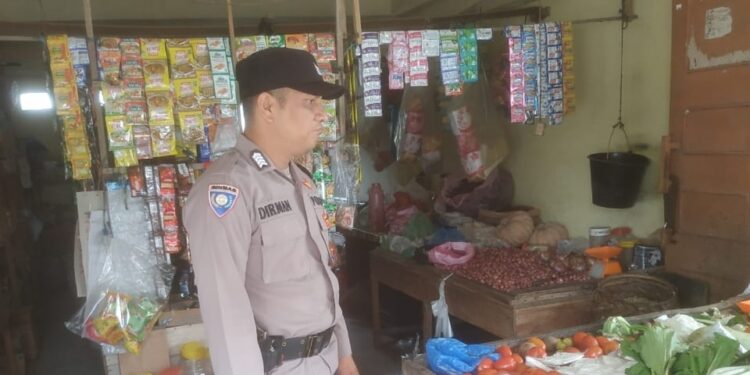 LHOKSEUMAWE – Personel Polsek Nisam Kembali sambang pedagang guna mengecek persediaan sembako di Kecamatan Nisam, Aceh Utara, wilayah hukum Polres Lhokseumawe, Kamis (16/2/2023).