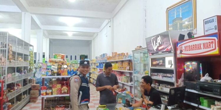 LHOKSEUMAWE – Personel Polsek Nisam, Polres Lhokseumawe melaksanakan patroli antisipasi gangguan Kamtibmas, dalam kegiatan ini personel menyasar swalayan di Kecamatan Nisam, Aceh Utara wilayah hukum Polres Lhokseumawe, Rabu (25/10/2023) malam.