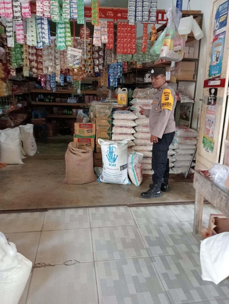 LHOKSEUMAWE – Personel Polsek Samudera monitoring stok beras dan barang sembako lainnya di kedai kelontong di Keude Geudong, Aceh Utara, wilayah hukum Polres Lhokseumawe, Minggu (17/12/2023).