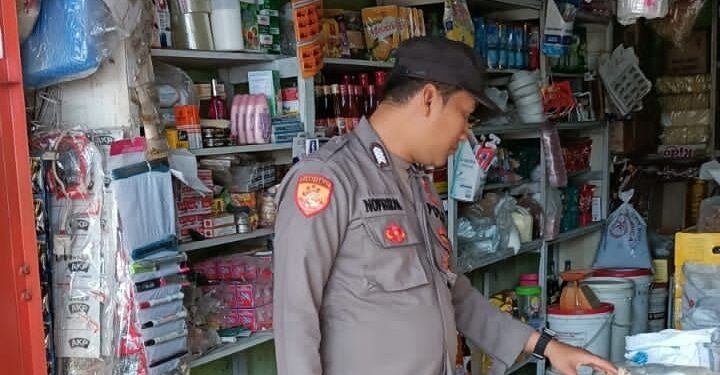 LHOKSEUMAWE – Personel Polsek Samudera monitoring stok sembako ke sejumlah pedagang di Kecamatan Samudera, Aceh Utara, wilayah hukum Polres Lhokseumawe menjelang bulan suci Ramadhan, Selasa (7/3/2023).