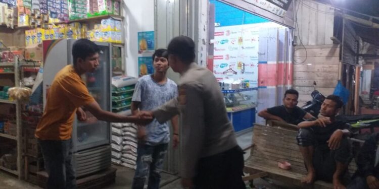 LHOKSEUMAWE – Personel Polsek Sawang mendatangi masyarakat menyampaikan pesan Kamtibmas pada saat melaksanakan patroli dialogis di seputaran Kecamatan Sawang, Aceh Utara, wilayah hukum Polres Lhokseumawe, Selasa (21/2/2023) malam.
