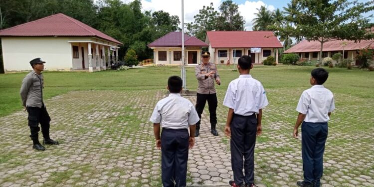 Personel Polsek Simpang Keuramat Latih Siswa Tentang Baris Berbaris