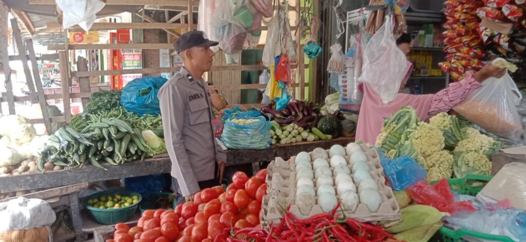 LHOKSEUMAWE – Personel Polsek Simpang Keuramat kembali memantau sejumlah barang sembako di kedai kelontong di pasar Simpang Empat, Simpang Keuramat, Aceh Utara, wilayah hukum Polres Lhokseumawe, Kamis (8/6/2023).