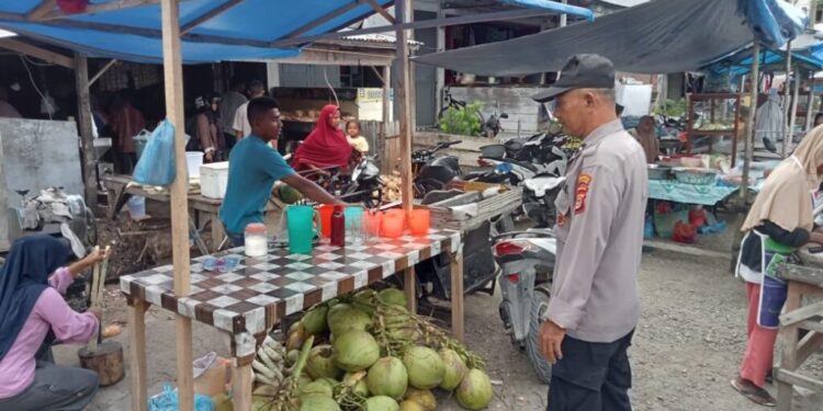 LHOKSEUMAWE – Personel Polsek Simpang Keuramat melaksanakan strong poin jelang buka puasa di Keude Simpang Empat, Kecamatan Simpang Keuramat, Aceh Utara, wilayah hukum Polres Lhokseumawe, Minggu (2/4/2023) sore.