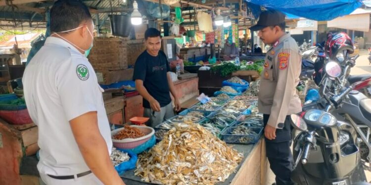 LHOKSEUMAWE – Personel Polsek Syamtalira Bayu melakukan pengecekan stok sembako di pasar tradisional Keude Bayu, Kecamatan Syamtalira Bayu, Aceh Utara, wilayah hukum Polres Lhokseumawe, Minggu (16/4/2023), kegiatan ini sebagai upaya antisipasi kelangkaan barang sembako menjelang Hari Raya Idul Fitri 1444 Hijriah.