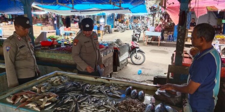 LHOKSEUMAWE – Personel Syamtalira Bayu melakukan pengecekan stok sembako ke sejumlah pedagang di pasar Keude Bayu, Syamtalira Bayu, Aceh Utara, wilayah hukum Polres Lhokseumawe, Sabtu (25/2/2023).