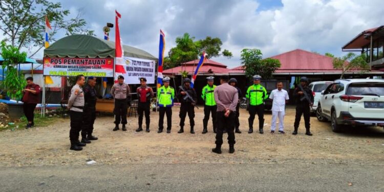 LHOKSEUMAWE – Personel Pos Pam wisata Gunung Salak, Aceh Utara, wilayah hukum Polres Lhokseumawe siaga dan mengatur arus lalu lintas di dua titik rawan longsor, Rabu (26/4/2023)