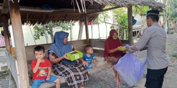 LHOKSEUMAWE – Personel Subsektor Banda Baro, Polres Lhokseumawe membagikan puluhan nasi kotak kepada warga kurang mampu dan anak yatim di wilayah Kecamatan Banda Baro, Minggu (9/4/2023) sore.