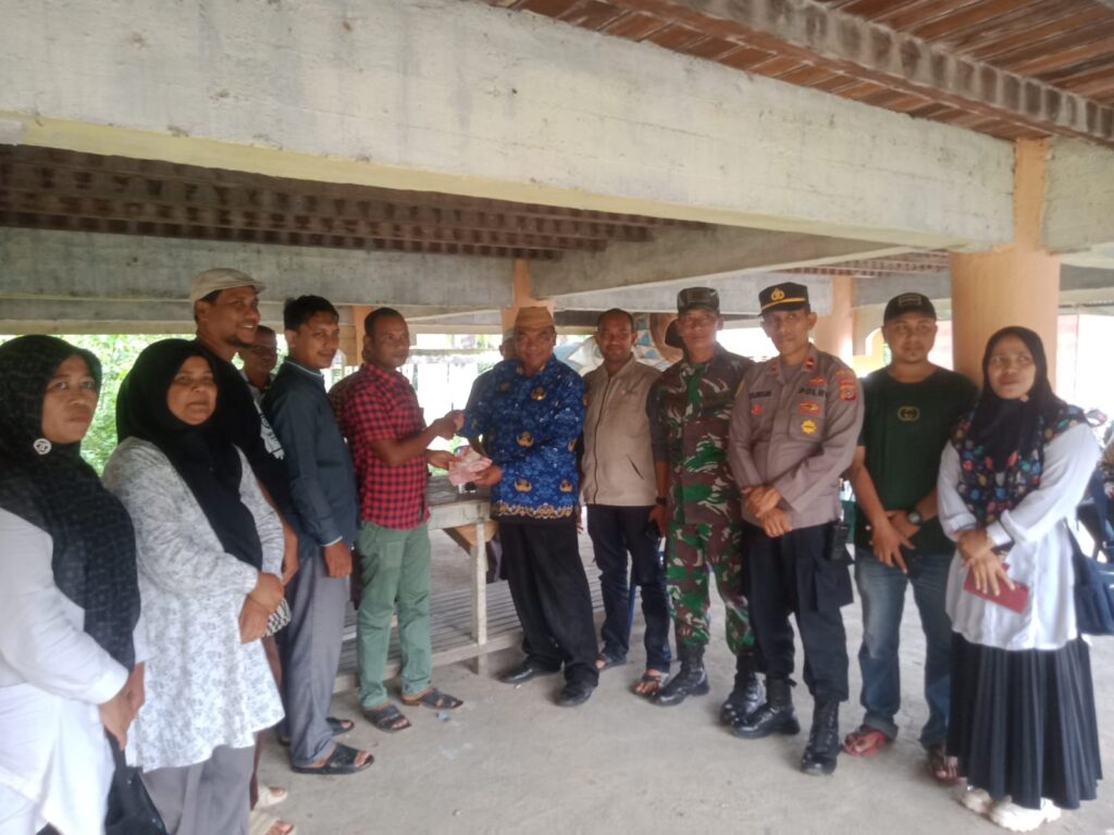 LHOKSEUMAWE – Personel Subsektor Banda Baro melakukan pengamanan penyaluran Bantuan Langsung Tunai (BLT) tahap IV di Gampong (Desa) Cot Jabet Kecamatan Banda Baro, Aceh Utara, wilayah hukum Polres Lhokseumawe, Rabu (29/11/2023).