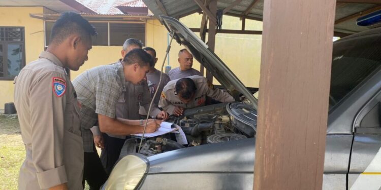 LHOKSEUMAWE – Personil Bagian Logistik (Baglog) melakukan pengecekan dan pengendalian Aset Barang Milik Negara (BMN) Semester I Tahun 2024 di Polsek-Polsek jajaran Polres Lhokseumawe, Senin, (27/5/2024).