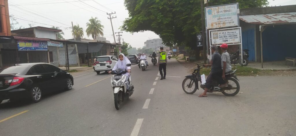 LHOKSEUMAWE Untuk meningkatkan keamanan, keselamatan, ketertiban, dan kelancaran berlalu lintas (Kamseltibcar), personil Polsek Syamtalira Bayu, Polres Lhokseumawe Polda Aceh melaksanakan program pengamanan dan pengaturan arus lalu lintas, Program ini bertujuan untuk mengatasi kemacetan dan mengurangi risiko kecelakaan, pada jam-jam sibuk pagi hari, pada masyarakat yang akan meyeberang jalan simpang Cot Pling kec.Syamtalira Bayu, Rabu .12 Juni 2024 Pagi .