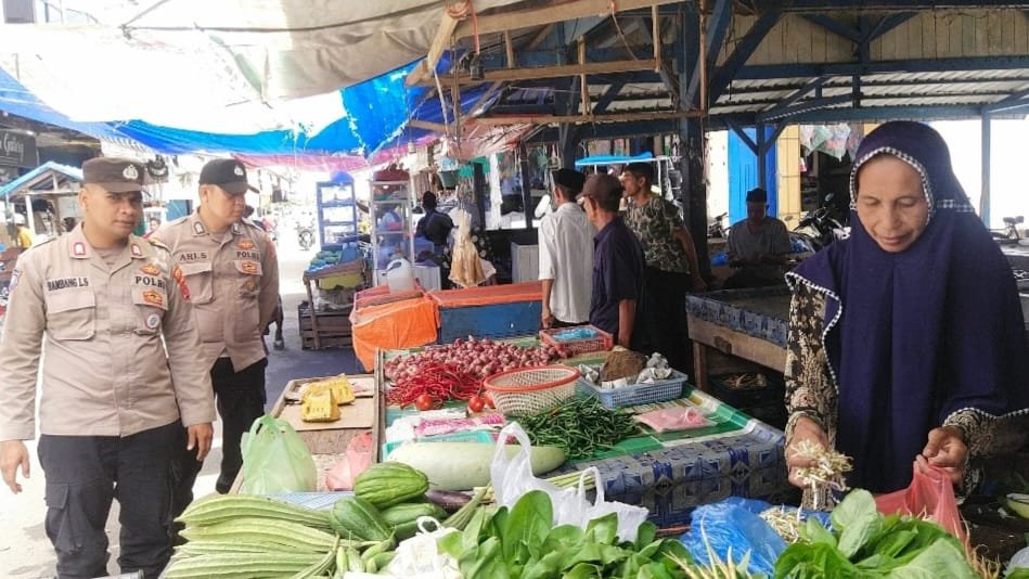 LHOKSEUMAWE personil Polsek Syamtalira Bayu yang bertugas di Polres Lhokseumawe, Polda Aceh, melaksanakan patroli rutin untuk memeriksa harga sembako di sejumlah pasar tradisional. Seperti di pasar Keude Bayu Patroli ini dilakukan sebagai bagian dari upaya untuk memastikan stabilitas harga kebutuhan pokok masyarakat. Selasa, 04/06/2024 Pagi.