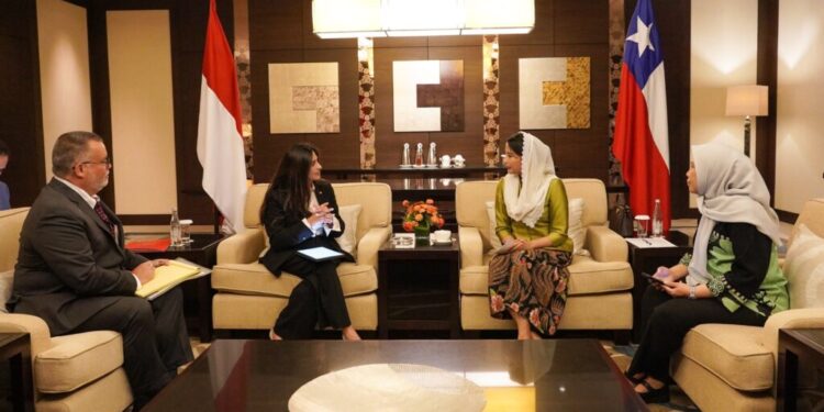 Jakarta – Wakil Menteri Perdagangan RI, Dyah Roro Esti melakukan pertemuan bilateral dengan Wakil Menteri Perdagangan Cile, Claudia Sanhueza di Jakarta, Senin (8 Sep).