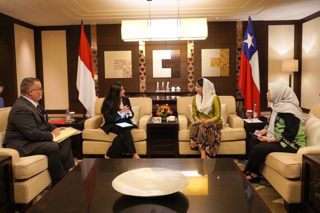 Jakarta – Wakil Menteri Perdagangan RI, Dyah Roro Esti melakukan pertemuan bilateral dengan Wakil Menteri Perdagangan Cile, Claudia Sanhueza di Jakarta, Senin (8 Sep).