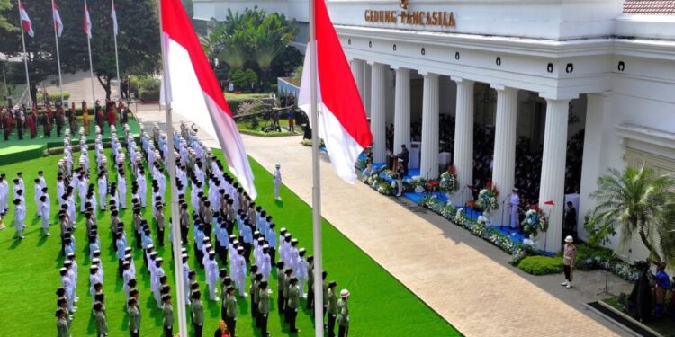 Upacara berlangsung dengan tertib dan penuh khidmat, mencerminkan penghormatan tinggi bangsa Indonesia terhadap Pancasila sebagai fondasi kehidupan bernegara.