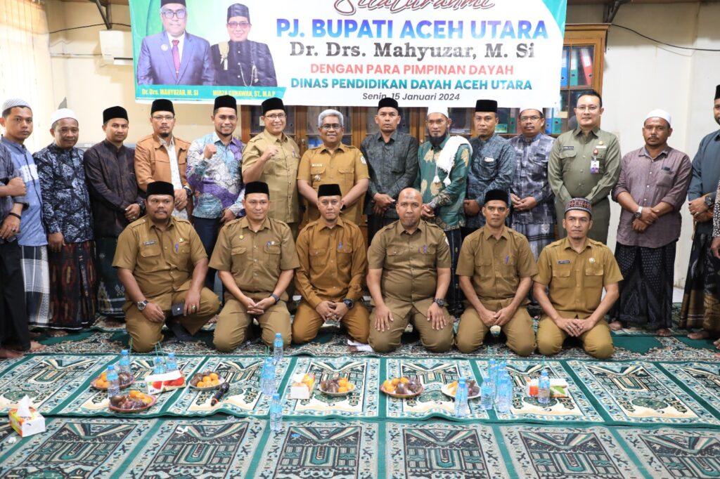 LHOKSEUMAWE – Penjabat Bupati Aceh Utara Dr. Drs. Mahyuzar, M.Si bersilaturahmi dengan para pimpinan dayah kabupaten tersebut di kantor Dinas Pendidikan Dayah di kompleks eks kantor bupati, Jln. Mayjen T. Hamzah Bendahara, Kota Lhokseumawe, Senin (15/1/2024). Momen tersebut berlangsung harmonis dan menunjukkan keakraban Pj. Bupati Mahyuzar dengan para pimpinan dayah se kabupaten.