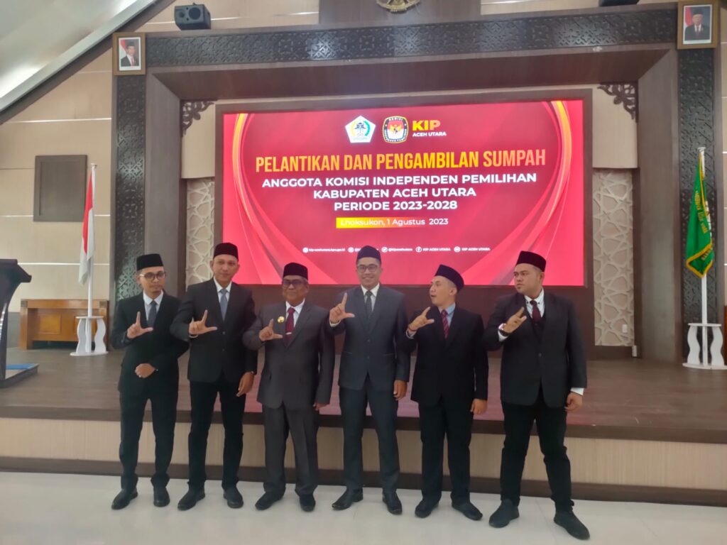ACEH UTARA — Penjabat Bupati Aceh Utara, Dr. Drs. Mahyuzar, M.Si mengharapkan kepada para Komisioner Komisi Independen Pemilihan (KIP) kabupaten setempat yang telah mengikuti pelantikan dan pengambilan sumpah janji di Aula Setdakab, Selasa (1/8/2203), agar terus bekerja keras menyukseskan tahapan Pemilu 2024.
