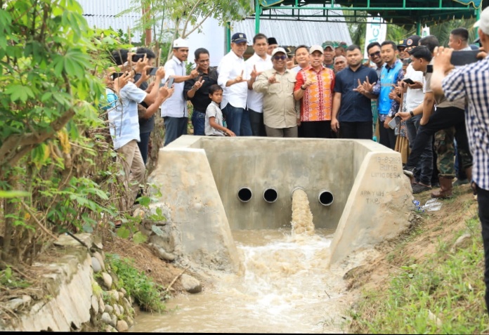 Penjabat Bupati Mahyuzar dalam sambutannya antara lain menyampaikan apresiasi atas kerjasama, kekompakan, dan kebersamaan masyarakat lima gampong dalam mencari solusi untuk menyediakan pengairan ke areal persawahan, sehingga petani di gampong-gampong tersebut sudah mulai dapat turun ke sawah.