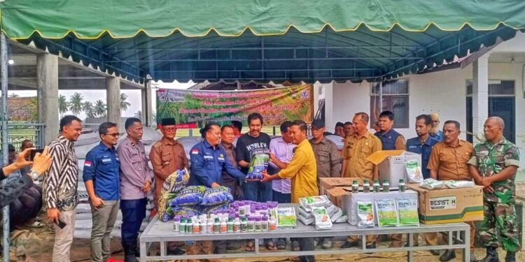 ACEH UTARA – Kelompok tani (poktan) di Gampong Alue Bili Rayeuk, Kecamatan Baktiya, Kabupaten Aceh Utara menerima bantuan berupa pupuk, bibit padi unggul hingga pestisida.