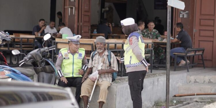 Polantas Lhokseumawe Bagikan Daging Meugang Kepada Warga Kurang Mampu dan Pengendara
