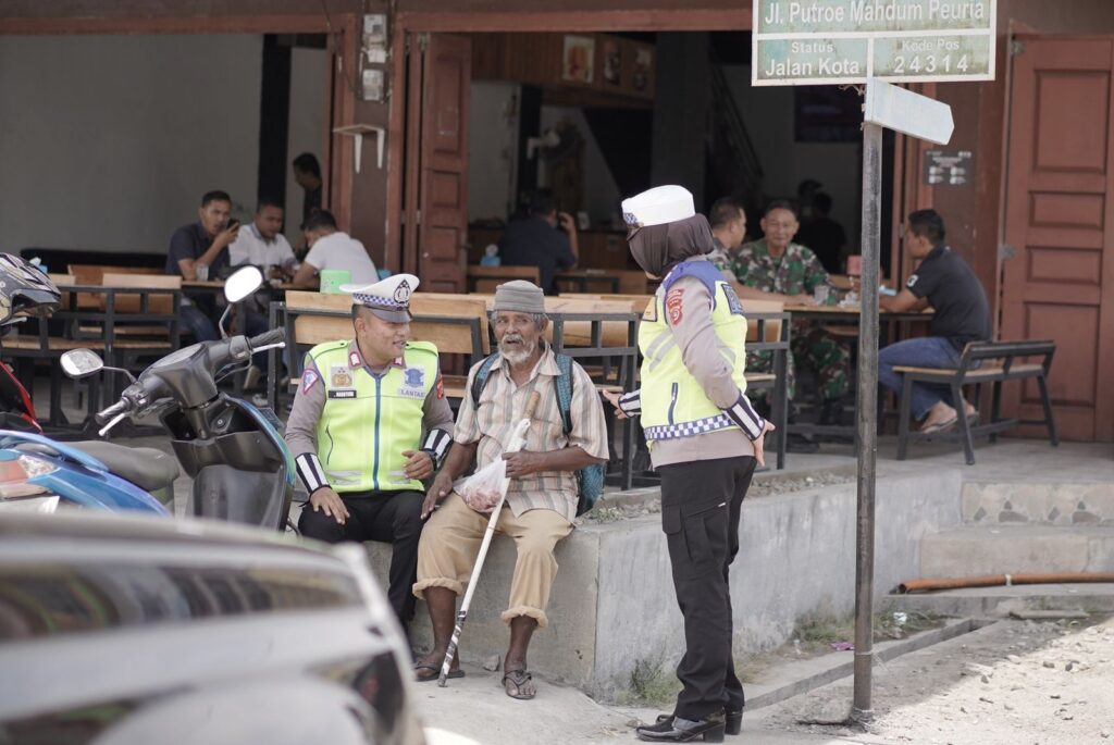 LHOKSEUMAWE – Polantas Lhokseumawe membagikan paket daging meugang menyambut bulan suci Ramadhan kepada warga kurang mampu dan pengendara di seputaran Kecamatan Banda Sakti serta Muara Dua, Kota Lhokseumawe, Selasa (21/3/2023).