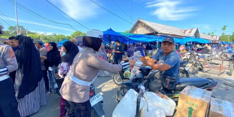 LHOKSEUMAWE – Sebagai bagian dari kegiatan sosial yang rutin dilakukan, Satlantas Polres Lhokseumawe bersama Komunitas Jumat Barokah mengadakan acara “Jumat Baroqah” di Pasar Pagi Batuphat Timur, Kecamatan Muara Satu, Kota Lhokseumawe, Jum’at (30/8/2024) pagi.