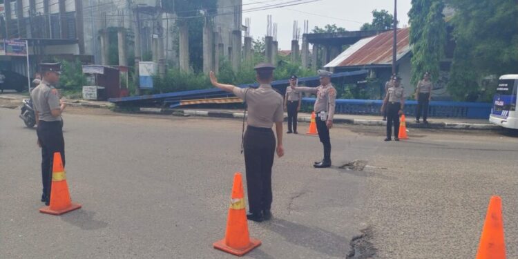 LHOKSEUMAWE – Polantas Lhokseumawe baru-baru ini menggelar pelatihan praktik pengaturan lalu lintas bagi para siswa polisi di Jalan Medan Banda Aceh tepatnya di Bundaran Simoang Cunda, Desa Utenkot, Kec. Muara dua, Kota Lhokseumawe, Jum’at (7/6/2024) pagi.