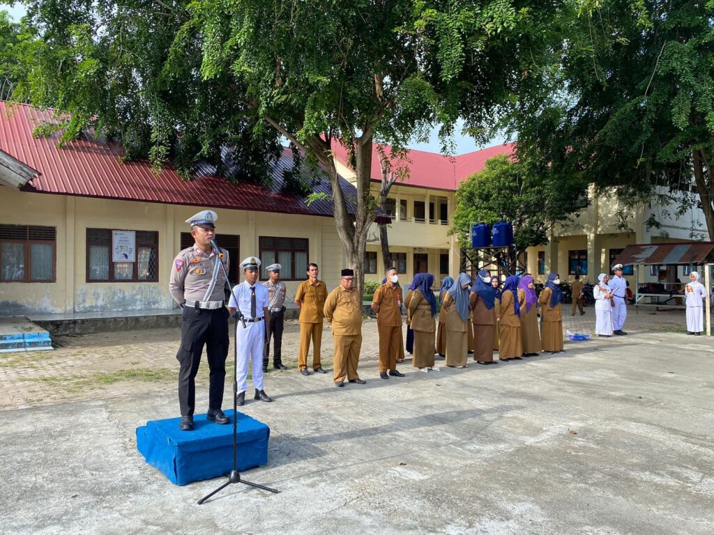 LHOKSEUMAWE – Unit Kamsel Satlantas Polres Lhokseumawe melaksanakan kegiatan Polisi Saweu Sikula di SMK Negeri 6 Lhokseumawe, senin (26/8/2024) pagi.