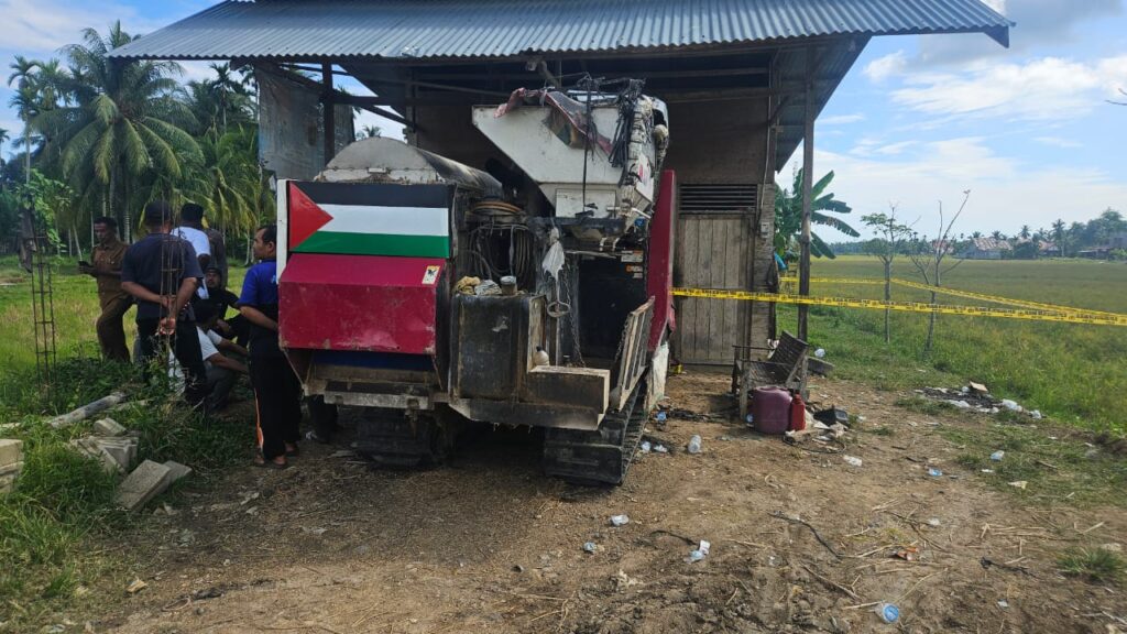 Aceh Utara – Personel Polsek Meurah Mulia, Polres Lhokseumawe, dengan sigap melakukan pengamanan Tempat Kejadian Perkara (TKP) penemuan seorang pria dalam kondisi meninggal dunia di dalam gudang penyimpanan mobil potong padi, yang berlokasi di Desa Reudeup, Kecamatan Meurah Mulia, Selasa (6/5/2025).