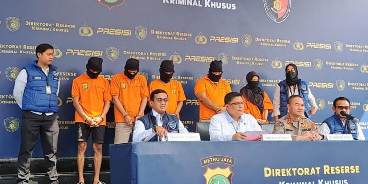 “Dari hasil penyelidikan dan penyidikan yang dilakukan oleh tim gabungan Subdit 4 Siber Ditreskrimsus Polda Metro Jaya, kemudian dilakukan upaya penangkapan terhadap lima orang tersangka,” ujar Dirreskrimsus Polda Metro Jaya, Kombes Pol Ade Safri Simanjuntak, Senin (11/9/2023).