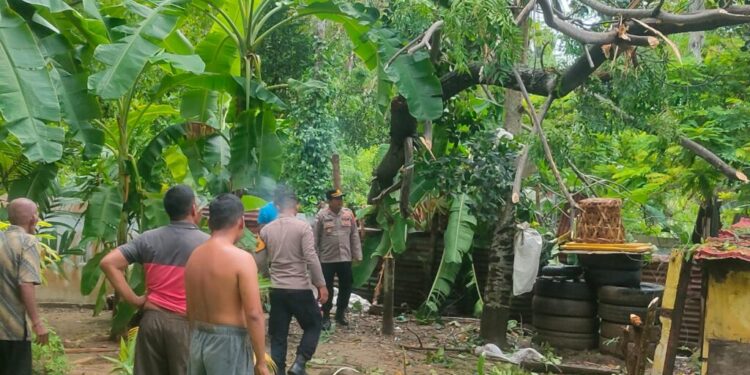 Lhokseumawe – Respons cepat ditunjukkan personel Polsek Muara Satu saat menangani peristiwa pohon tumbang yang menimpa bagian dapur rumah warga di Dusun II Tgk. Mon Carak, Desa Blang Panyang, Kecamatan Muara Satu, Kota Lhokseumawe, Kamis (9/4/2026).