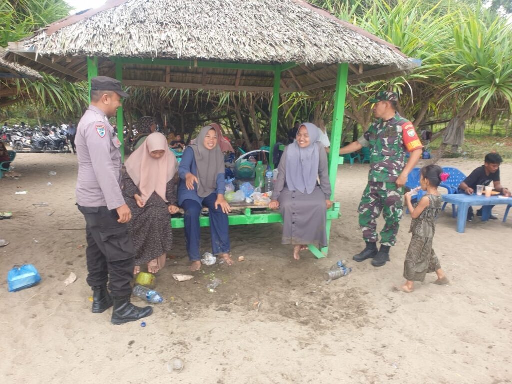 LHOKSEUMAWE – Polisi dan TNI kompak patroli kawal Aktivitas Wisatawan di pantai Lancok, Aceh Utara, wilayah hukum Polres Lhokseumawe, Minggu (30/4/2023), kegiatan ini guna mengantisipasi gangguan Kamtibmas di obyek wisata.