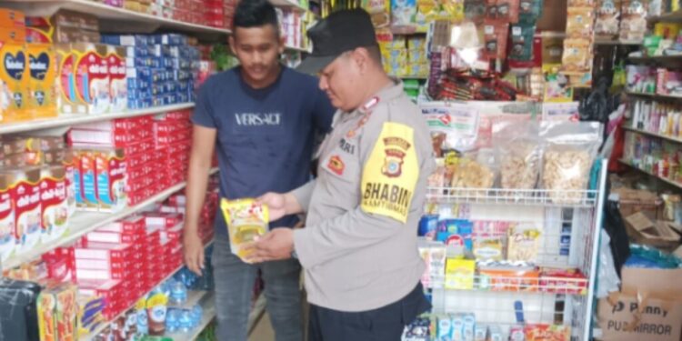 LHOKSEUMAWE – Personel Polsek Meurah Mulia mendatangi penjual sembako di pasar Keude Jungka Gajah, Kecamatan Meurah Mulia, Aceh Utara, wilayah hukum Polres Lhokseumawe, Kamis (1/6/2023).