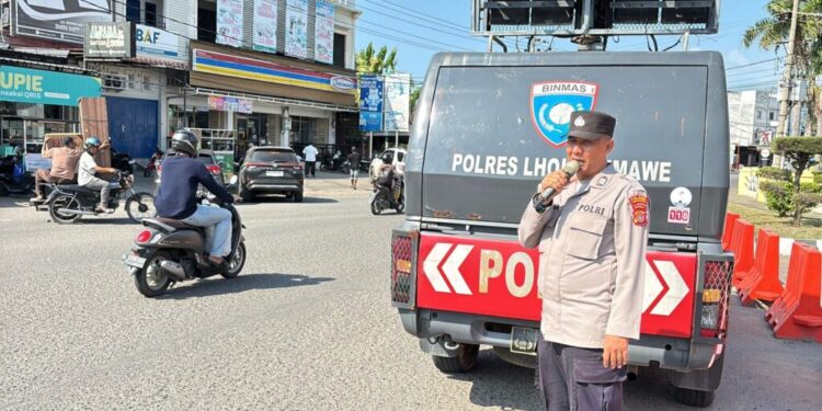 Lhokseumawe – Dalam rangka menjaga ketertiban dan memuliakan pelaksanaan Syariat Islam di Kota Lhokseumawe, personel Satuan Binmas Polres Lhokseumawe melaksanakan kegiatan himbauan kamtibmas kepada masyarakat pada Selasa (22/7/2025) sore di seputaran pusat kota.