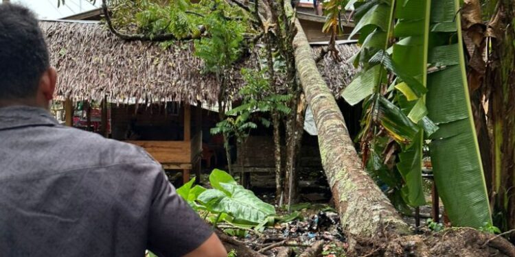 Aceh Utara – Hujan deras disertai angin kencang yang melanda wilayah Kecamatan Nisam Antara, Kabupaten Aceh Utara, pada Sabtu (7/6/2025) sekitar pukul 17.00 WIB, menyebabkan tumbangnya pohon dan tiang listrik di Desa Alue Dua.