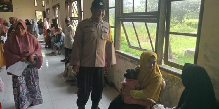 LHOKSEUMAWE – Personil Polsek Simpang kramat melakukan pengamanan penyaluran Bantuan Pangan Beras Cadangan Pemerintah (BP-BCP) tahap-2 di Kecamatan Simpang Keuramat, Aceh Utara, Senin (26/2/2024).