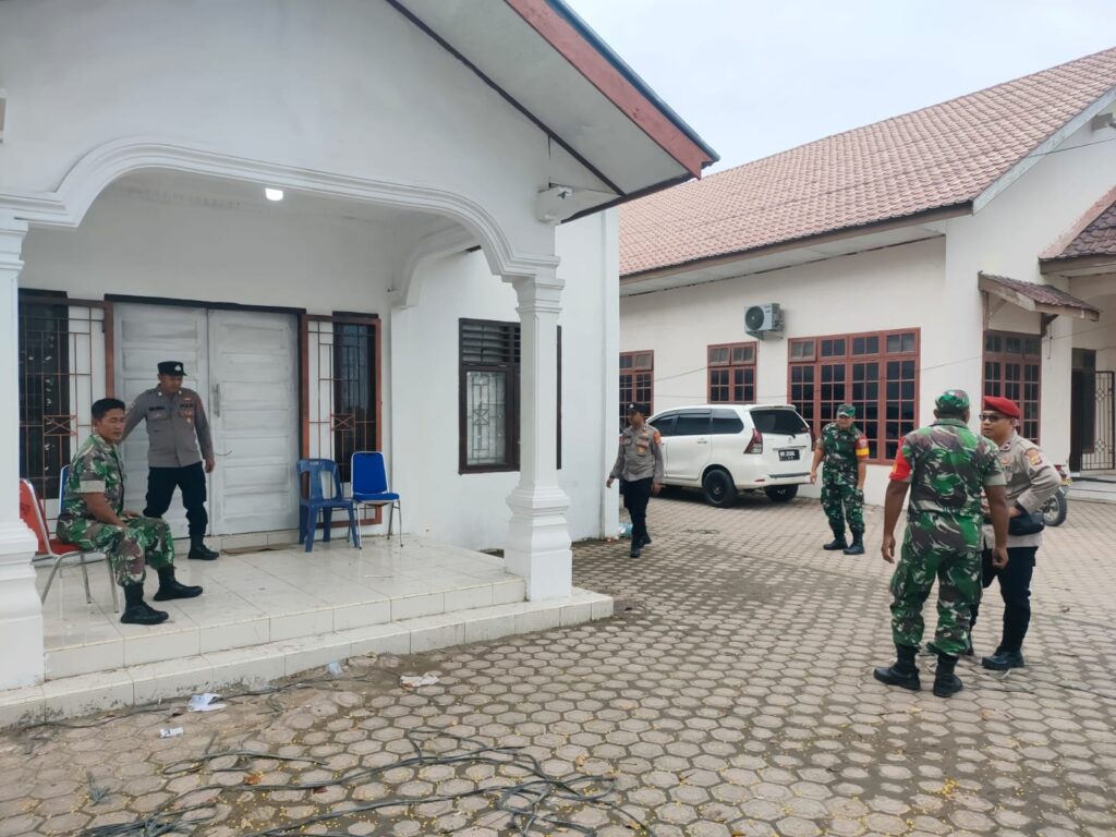 LHOKSEUMAWE – Personel Polsek Syamtalira Bayu bersama BKO Polres Lhokseumawe melakukan pengamanan di gudang logistik PPK Kecamatan Syamtalira Bayu, Aceh Utara, wilayah hukum Polres Lhokseumawe, Jumat (16/2/2024).