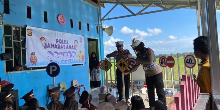 “Murid PAUD dikenalkan rambu-rambu lalu lintas, marka jalan, alat pemberi isyarat lalu lintas (APILL), selain itu personel mempraktekan tata cara penggunaan helm dengan baik dan benar saat berkendara di jalan raya,” ujarnya.