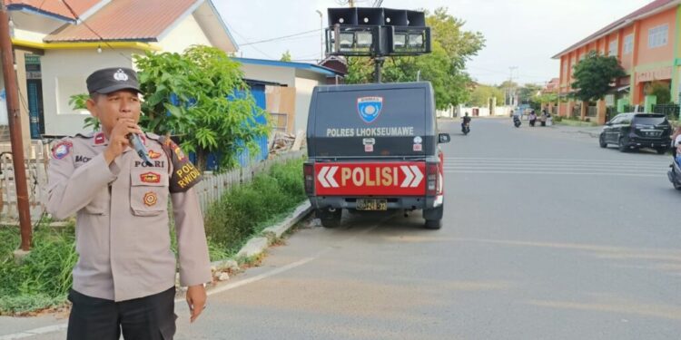 LHOKSEUMAWE – Polres Lhokseumawe sampaikan himbauan kamtibmas Jelang berbuka puasa Ramadhan 1445 Hijriah dengan menggunakan mobil Public Address di lokasi keramaian dan pusat pasar Kota Lhokseumawe, sabtu (16/3/2024) sore.