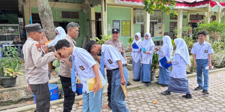 Lhokseumawe – Personel Satuan Binmas Polres Lhokseumawe melaksanakan kegiatan Polisi Saweu Sikula dengan memberikan imbauan kamtibmas kepada siswa-siswi dan dewan guru di SMAN 5 Kota Lhokseumawe, Kamis (21/8/2025) pagi.