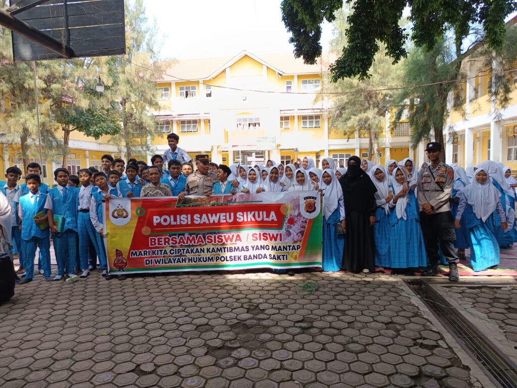 Lhokseumawe – Dalam upaya meningkatkan kesadaran hukum dan mencegah kenakalan remaja, Polsek Banda Sakti melaksanakan program Polisi Saweu Sikula di SMP Negeri 2 Lhokseumawe, Gampong Hagu Selatan, Kecamatan Banda Sakti, Kota Lhokseumawe, Kamis (20/3/2025) pagi.