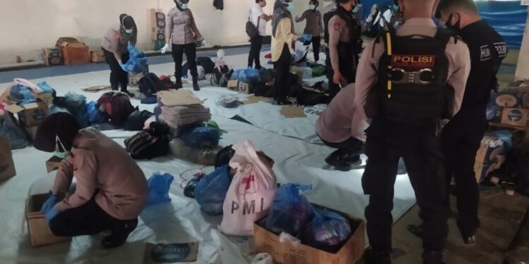 Banda Aceh — Personel Polresta Banda Aceh Polda Aceh menemukan 15 unit handphone saat menggeledah ulang barang bawaan pengungsi Rohingya di Balai Meuseuraya Aceh (BMA), Kota Banda Aceh, Rabu, 20 Desember 2023.