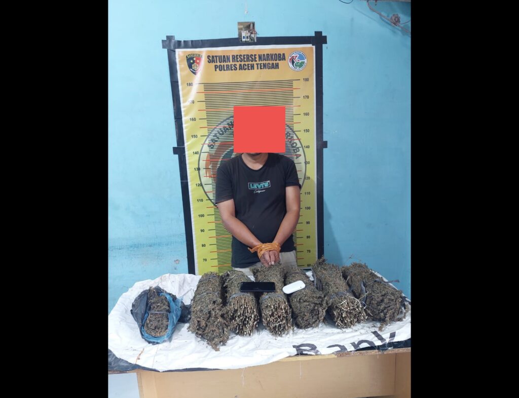 TAKENGON – Satres Narkoba Polres Aceh Tengah kembali bekuk tersangka pengedar narkotika jenis ganja. Adapun pelaku yang diamankan yakni IS (37) Pedagang asal Desa Cot Leupee Kecamatan Nisam, Kabupaten Aceh Utara.