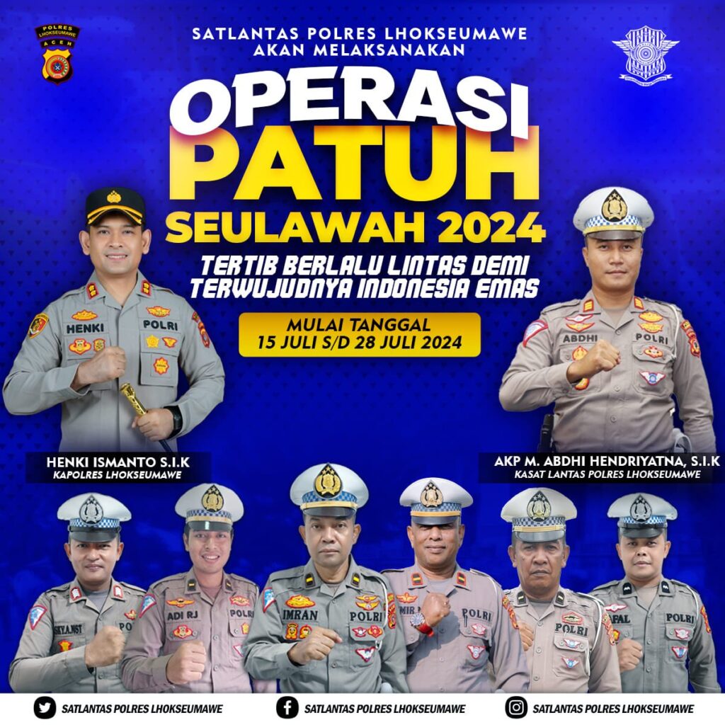 LHOKSEUMAWE, Satuan Lalu lintas Polres Lhokseumawe Polda Aceh akan menggelar Operasi Patuh Seulawah mulai tanggal 15 – 28 Juli 2024. Operasi tersebut akan melibatkan sejumlah dinas terkait dalam upaya meningkatkan keselamatan di jalan raya.